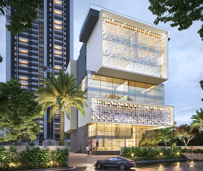 - High speed automatic passenger lifts with Emergency rescue device with energy efficiency of reputed make, Entrance with Granite/Tile cladding.