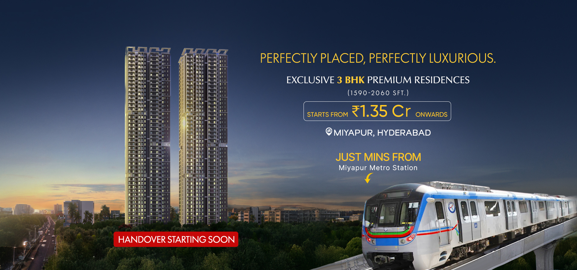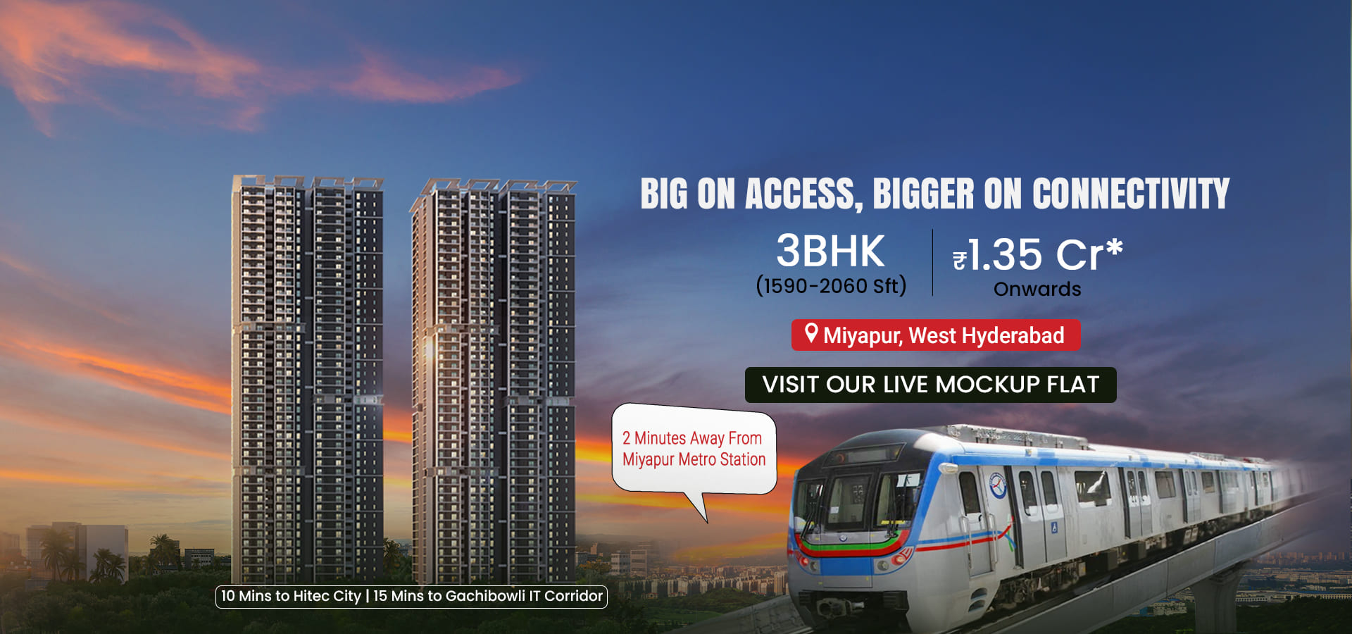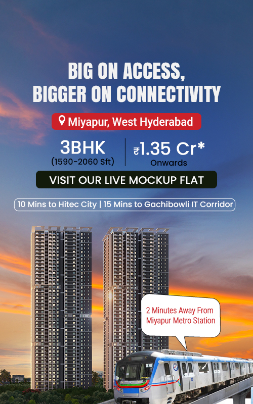 A vibrant haven nestled in the core of Hyderabad, Twin Towers stands as a prestigious landmark in the lively Miyapur neighborhood. This towering architectural marvel comprising of 47 floors redefines opulent living by providing luxurious residential apartments in Hyderabad. With its intelligent spatial planning and top-notch amenities, Twins sets the ultimate standard for premium living. It emerges as the coveted preference for homebuyers seeking exquisite 3 BHK flats in Miyapur.