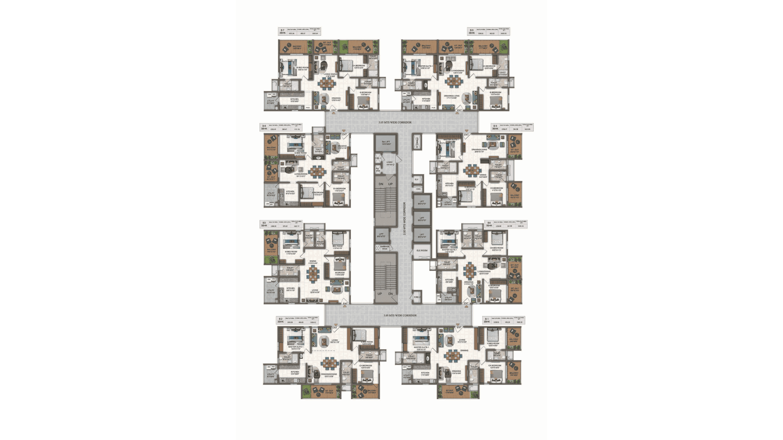 | 1940 3BHK Flats | WEST/CORNER | Check Price |