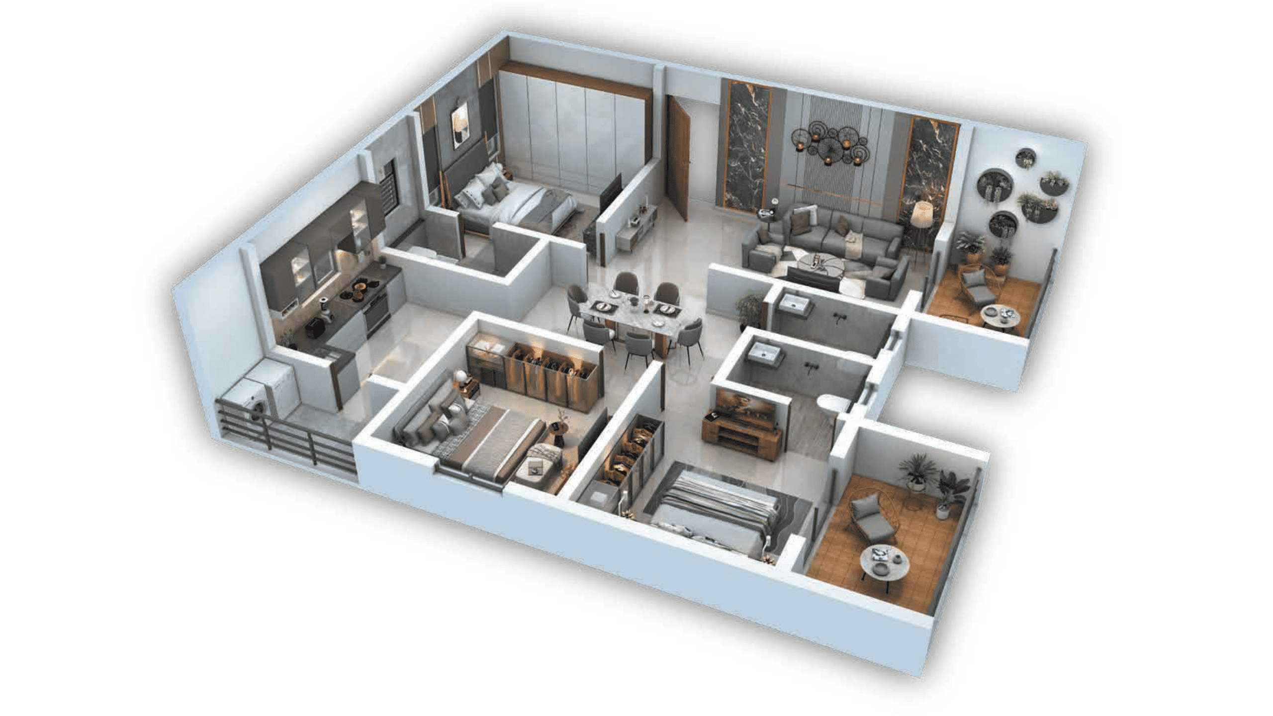 - Provision of Split AC system without copper piping in all Bed Rooms and Living areas / Provision for Split AC system along with drain for Drawing, Living and all Bed rooms.